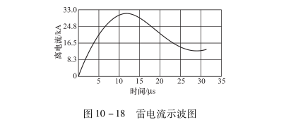 ? ? ? 靜電感應(yīng)是由于雷云放電前,對地面上物體的頂端感應(yīng)出大量異性電荷,呈現(xiàn)很高電壓的現(xiàn)象,一旦雷云與其他部位放電后,靜電感應(yīng)現(xiàn)象也隨之消失,致使聚集大量電荷,呈現(xiàn)很高的電壓,迅速沿物體傳播。電磁感應(yīng)是雷擊后瞬間產(chǎn)生又很快消失的雷電流,在其周圍空間產(chǎn)生強大的電磁場的現(xiàn)象,在此電磁場作用范圍內(nèi)的金屬體上,會產(chǎn)生很高的感應(yīng)過電壓。此感應(yīng)過電壓沖擊波的破壞性也很大。雷云中可能同時存在著幾個電荷聚集中心,所以經(jīng)常出現(xiàn)多次重復(fù)性的放電現(xiàn)象,常見的為2或3次。當?shù)谝粋€電荷聚集中心完成放電過程后,其電位迅速下降,第二個電荷聚集中心立即向前一個放電位置移動,瞬間重復(fù)放電,每次間隔時間從幾百微秒至幾百毫秒不等,但其放電電流會逐次遞減。第二個及以后的雷云放電電流通常不超過30kA。雷電流示波圖如圖10-18所示。