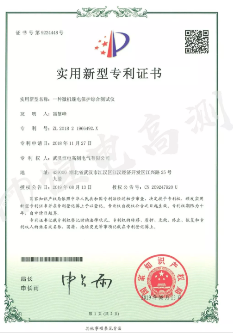 ?? ? ?近日,我司又榮獲了由中華人民共和國(guó)國(guó)家知識(shí)產(chǎn)權(quán)局頒發(fā)的實(shí)用新型證書(shū)。